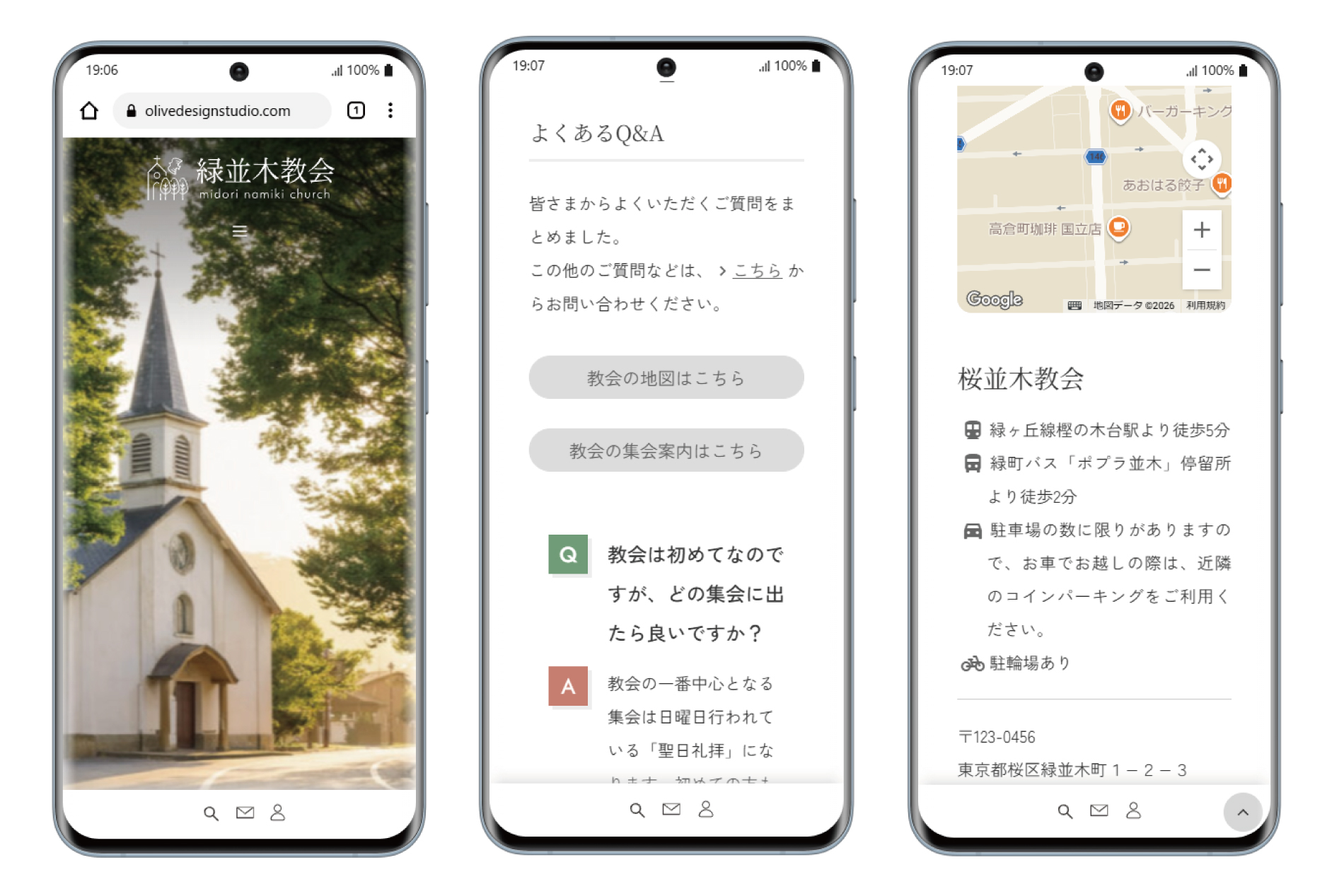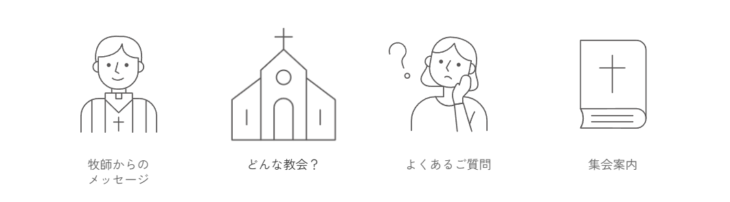 教会に行ったことが無い方のためのQ&Aや、アクセスマップはもちろん、どんな教会なのかを紹介する教会案内、どんな集会が行われているかを紹介する集会案内といった、基本的な知りたい情報にスムーズにアクセスできる構造になっています。