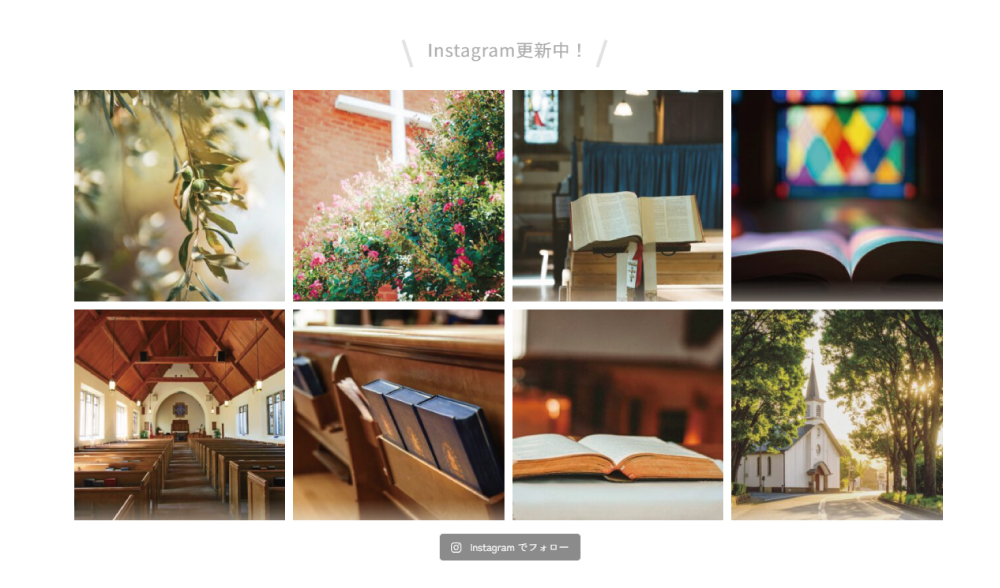 教会や礼拝堂などの写真をご用意いただける教会様向けのデザインとなっています。そのため、「あまり良い写真を用意できない…」という教会様にはあまり向いていないフォーマットでもあります。そういう教会様向けには、今後全く別のフォーマットを制作することを考えていますので、どうぞお楽しみに。